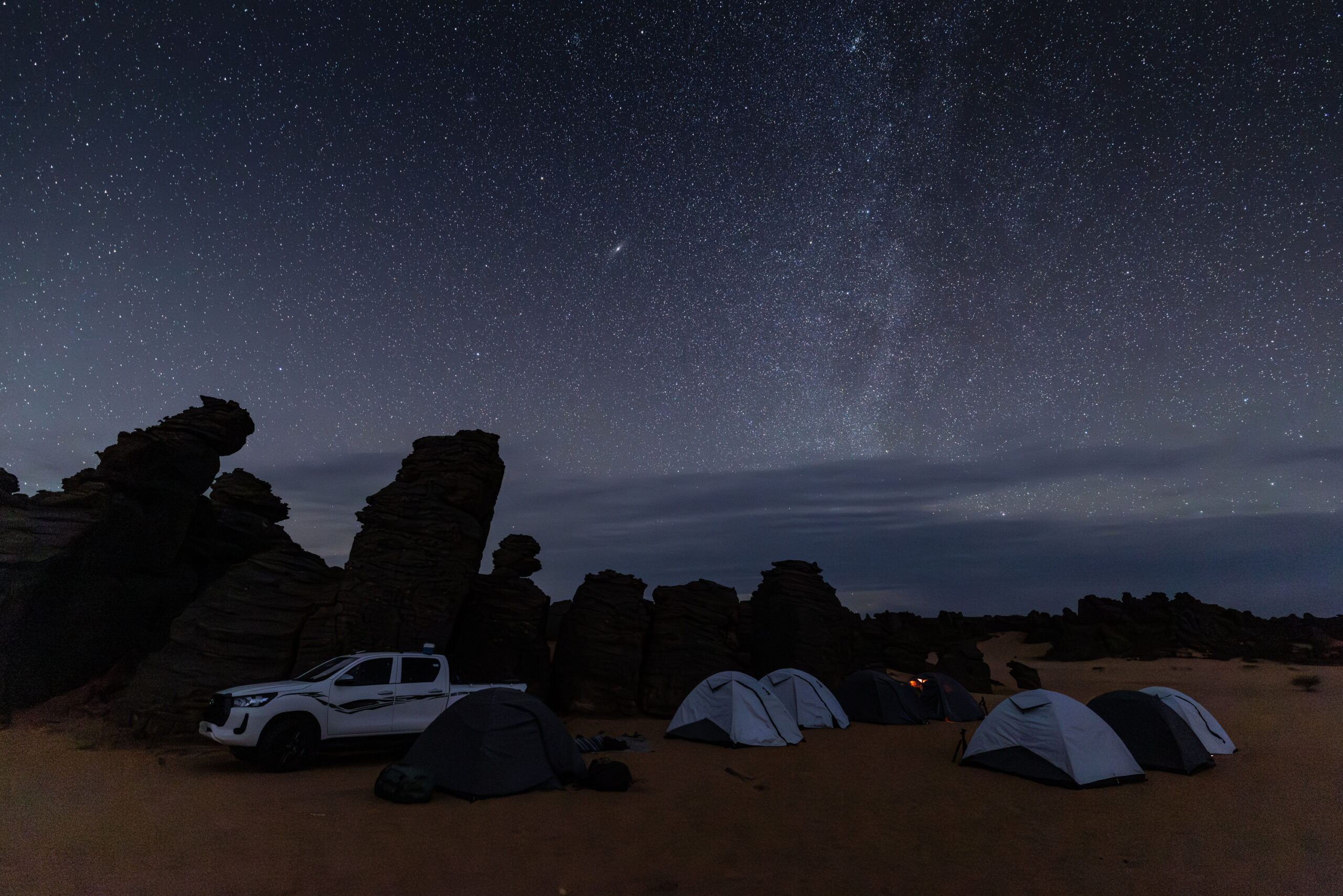 Unsere heutige Etappe führt uns nach Ouanzawaten, einer Region, die für ihre markanten Steinbögen und schroffen Klippen bekannt ist. Diese einmalige Landschaft scheint direkt aus einem Abenteuerfilm zu stammen und bietet perfekte Motive für dramatische Landschaftsaufnahmen.